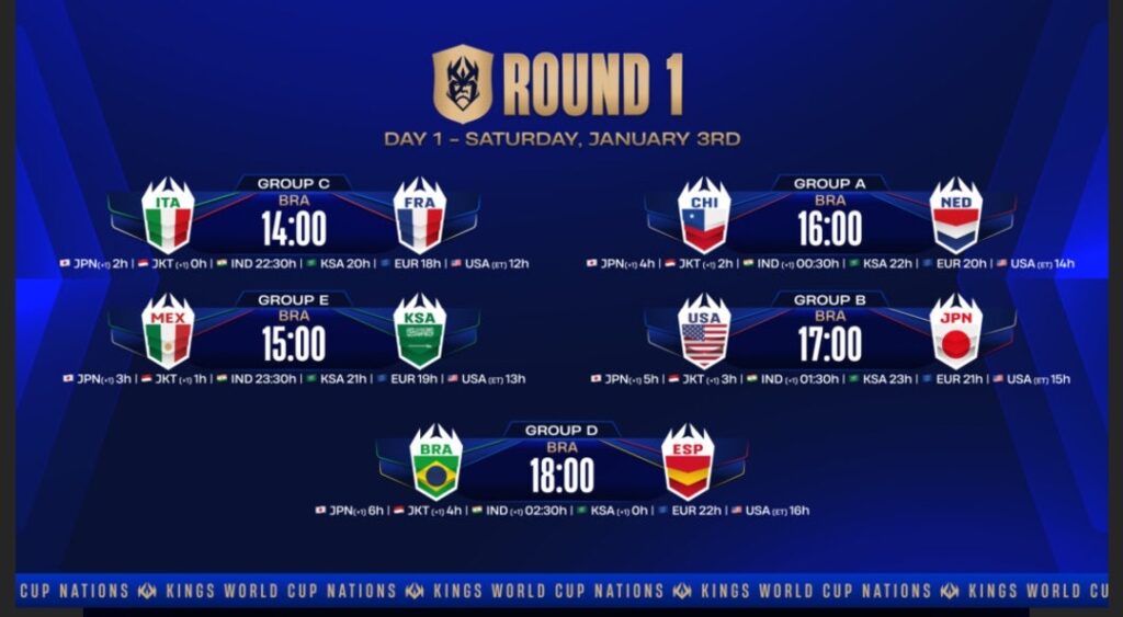 ويخوض منتخب السعودية منافساته في المجموعة الخامسة إلى جانب منتخبات المكسيك والهند وإندونيسيا، بقيادة صانع المحتوى دربحة، بطل دوري الملوك لمنطقة الشرق الأوسط وشمال أفريقيا، فيما يشارك منتخب قطر في المجموعة الرابعة إلى جانب منتخبات البرازيل وإسبانيا وبيرو، ويقوده صانع المحتوى أبو فلة.
