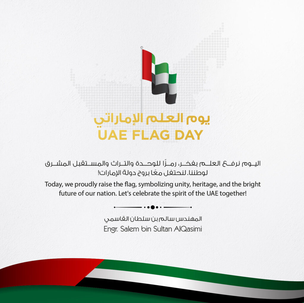 وأضاف سمو الشيخ سالم بن سلطان القاسمي: “نرفع اليوم علم دولتنا بفخر واعتزاز، فهو راية المجد والعطاء، ورمز لتراثنا العريق ومستقبلنا المشرق. إن احتفاءنا بيوم العلم هو تجديد للعهد والولاء لوطننا الغالي، ومواصلة لمسيرة الاتحاد التي نفاخر بها العالم أجمع.”