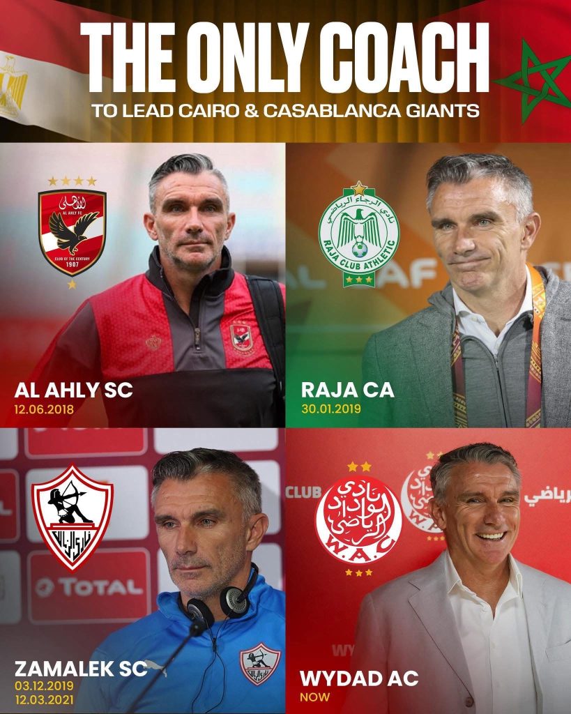 يقدم موقع ايجيبت سكور احصائية جديدة حيث أصبح الفرنسي باتريس كارتيرون المدرب الوحيد الذي سبق له قيادة جميع فرق الأبطال الكبرى في المغرب ومصر، بعد توليه منصب المدرب الجديد لنادي الوداد البيضاوي.