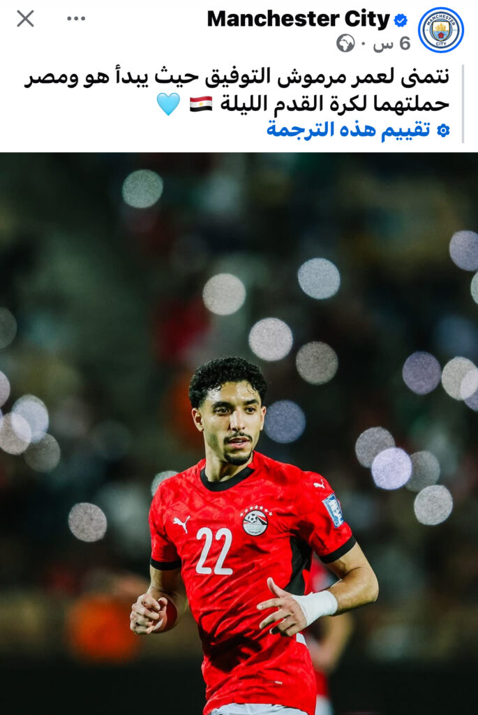 أعلن نادي مانشستر سيتي دعمه الكامل للنجم المصري عمر مرموش، متمنيًا له التوفيق مع انطلاق مشواره الجديد رفقة منتخب مصر، حيث تبدأ الحملة الكروية الليلة في خطوة مهمة على المستويين المحلي والدولي.