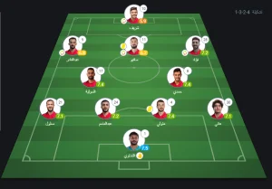 خط الدفاع: علي معلول 7.1، محمد عبد المنعم 7.2، محمود متولي 7.4، محمد هاني 7.1.